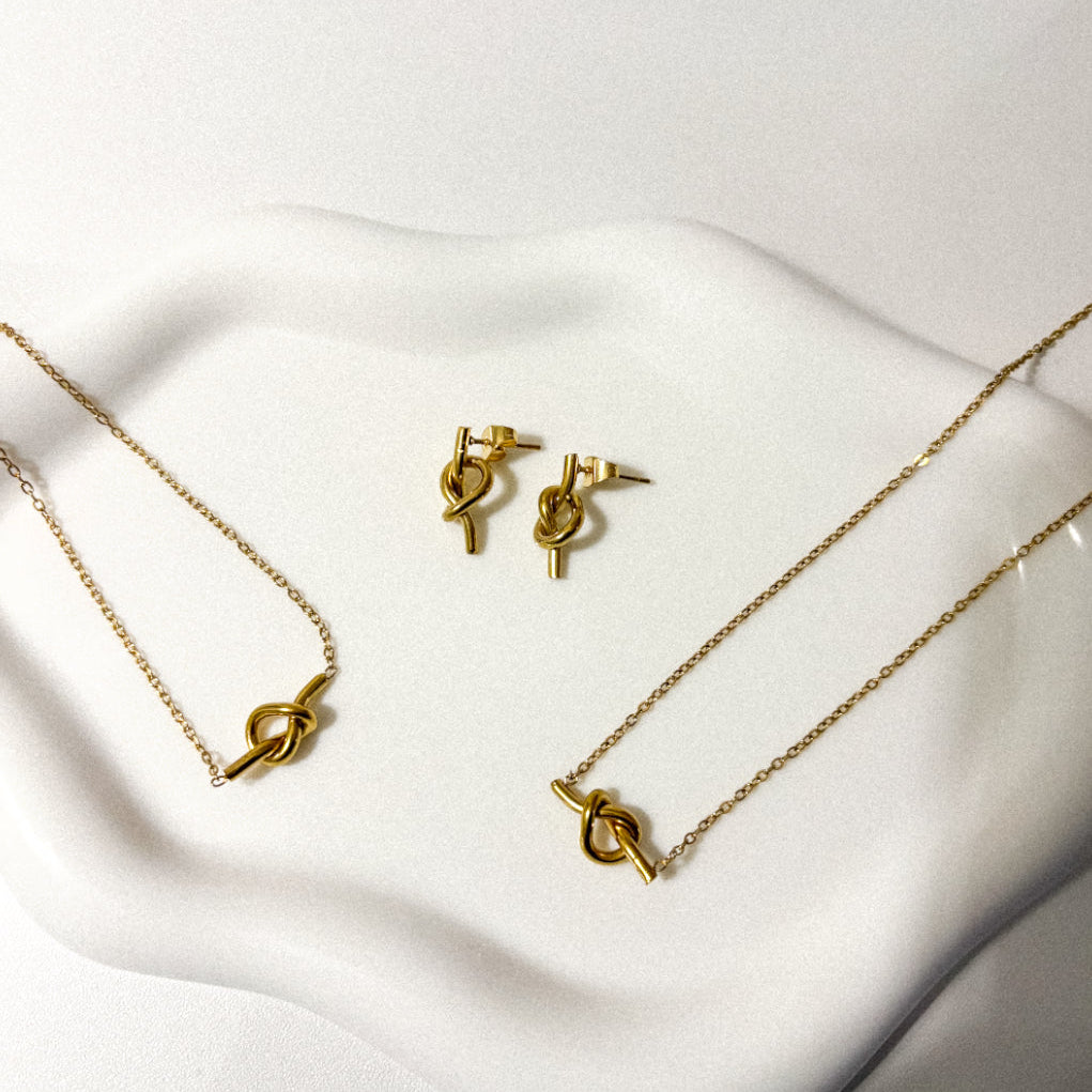 Set of earrings, bracelet, and necklace. Stainless Steel 304.